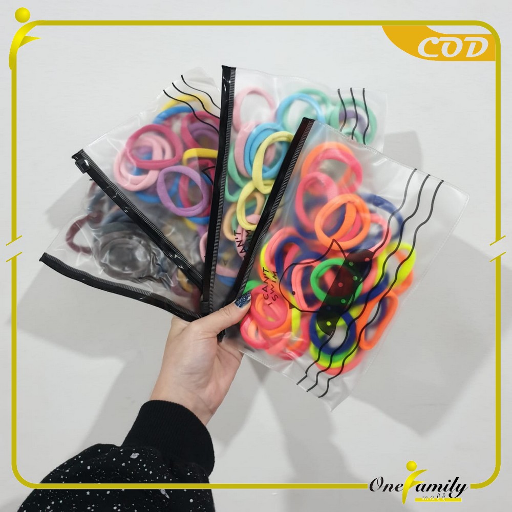 ONE C10 C25 27 Ikat Rambut Polos Set 20 50 100pcs Karet , Sumber : shopee.co.id